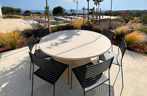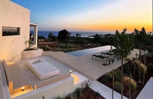 Villa CREA is an elegant residence with a spectacular infinity pool overlooking the sea, where the sunset reflects, creating breathtaking scenery. Designed by a renowned architect, it accommodates up to 8 guests. It features four bedrooms, three bathrooms (two of which are ensuite), a laundry room, a spacious living area, and an open-plan kitchen. The A++ rated appliances, furnishings, and textiles are of the highest quality.
