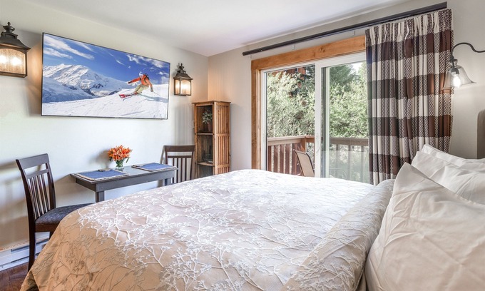 If you are looking for a charming romantic getaway with balcony overlooking babbling creek, look no further. This tiny (280 sq.ft.), stylish studio is in easy walking distance to Main Street, Snowflake Lift and Sawmill Reservoir. Ski back to the condo via Four O’Clock run. It is furnished with a king size bed with luxury down bedding, big screen TV and a loveseat recliner. Escape to the heart of the Rocky Mountains and experience our enchanting town. Access to Upper Village Pool and Hot Tubs.