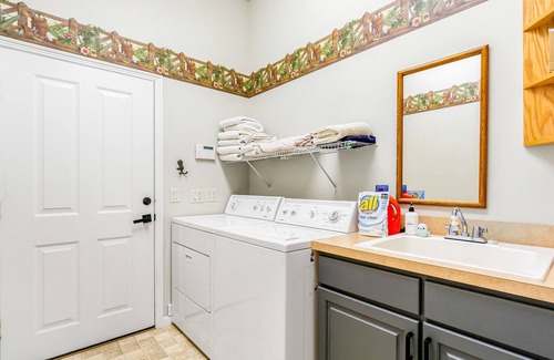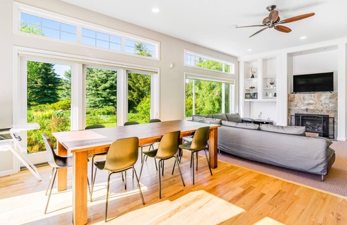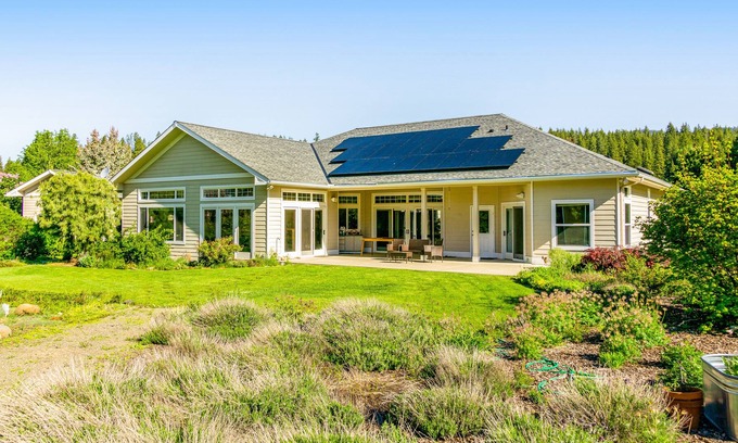 Inside, you’ll find an open living space with hardwood floors, high ceilings, and tons of natural light, thanks to walls of picture windows. A foosball table, board games, free WiFi, and a streaming-capable TV will keep everyone entertained. Thoughtful kid-friendly amenities include a Pack ’N Play, high chair, games, toys, dinnerware, and books. Those with lingering remote work can make use of the double workstation with monitors. The chef will love the well-equipped kitchen, with a full suite of appliances, including a double oven, and there’s plenty of seating at mealtime between the breakfast bar and dining table. After a full day, relax on the sectional in front of the gas fireplace before bed. Lucky guests of the primary bedroom will enjoy direct patio access and a huge en suite bathroom. A restful night’s sleep awaits, but don’t turn in without stepping outside one last time to admire the stars - with no light pollution nearby, the night sky may be your favorite part of the day.