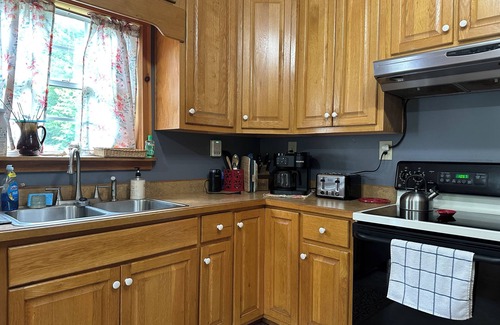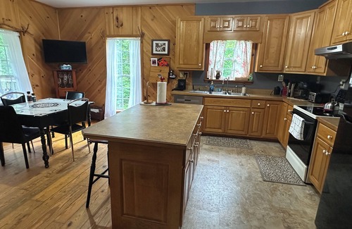 The cabin has been furnished with many amenities. It has a high-efficiency washer and dryer and high-definition, smart televisions. For a nice, quiet evening, enjoy some of the board games or jigsaw puzzles. Because cell service in the mountains can be sketchy at best, we have included free long distance calling from the land line. You can also get a pretty good connection using the wi-fi. Our kitchen is fully loaded with everything you'll need from a coffee maker to a crock pot.