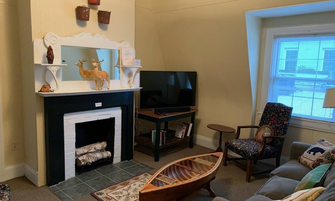Creek Side Apartment is on the second floor above Bacova Properties. The apartment is conveniently located in the center of Hot Springs (2817 Main St.) within walking distance to the resort hotel, The Homestead. There are shops and restaurants: wine, coffee, Sam Snead's Tavern, VA ABC store and other amenities next door. In addition, there is the newly leased space, formerly Duck In Deli and Market, that is now Claire's Cakes and Cafe offering breakfast, deli sandwiches, soups, salads, espresso, hand dipped ice cream. Directly across the street is the micropub Bacova Beer! The two apartments, Creek Side and Main Street, are on the same floor and can be combined for larger groups or family reunions. The apartment has two bedrooms and one full bathroom. The living room has a 50" flat screen TV with streaming service and excellent WiFi throughout. There is a pull out queen size bed in the living room allowing a total of 6 adults. It is non-smoking and pet friendly!