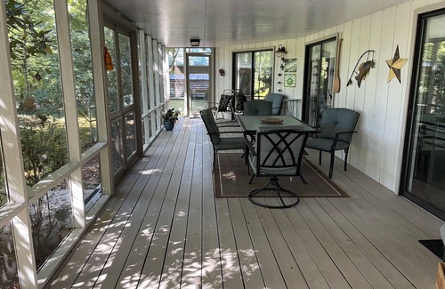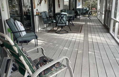 Home with open floor plan and room for 6. Extra bathroom makes it easy for all guests. Each room has access to 40 foot screened in porch via sliding glass doors. There is also a fenced in play yard for your furry family members. Minutes from historic downtown or Lake Chatuge for those needing lake time. The house is 10 miles from Murphy and 15 miles from the casino for those who want to try their luck. Easy access to Franklin NC , Helen Ga, Hiawassee and Blairesville. My personal favorite is setting by the creek around the stone fire pit.
