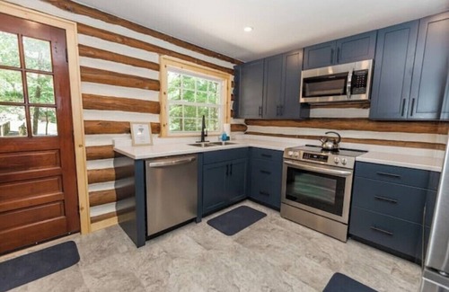 Unexpected luxuries await at this enchanting log cabin offering a cozy retreat for guests. With 2 bedrooms including a king, queen, twin, and bunk bed, there's space for everyone to unwind. The bathroom features a walk-in shower with pebble floor to massage your feet. Nestled in a tranquil setting, this cabin is the perfect escape from the hustle and bustle of everyday life and the hot tub is sure to help guests fully relax. Located next door to the Greenbrier State Forest, 4 miles from the Greenbrier Golf Course and Bunker Tours, 6 miles from historic Lewisburg.