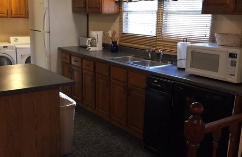 Sleeps up to 10. Outdoor fire pit. Wide-screen TV. Washer/dryer. Full kitchen. Free Wi-Fi. 4 TVs. Electric fireplace. 7 miles to Bear Wallow Trail. Extra parking. Telephone. Cable TV. Central heat/air. Microwave. Dishwasher. Covered porch. Non-smoking. Coffee maker. Blender. Toaster. Bedroom 1: King. Bedroom 2: Queen. Bedroom 3: Queen. Silverware, pots, and dishes provided. Towels, sheets, and pillows included. Starter supplies of soap, shampoo, conditioner, paper towels, toilet tissue, laundry, and dish detergent.