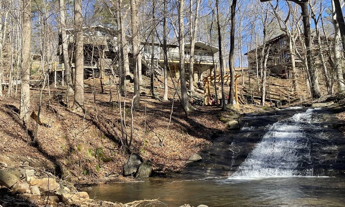Imagine starting your morning drinking coffee listening to the rushing waters of the waterfall just beyond your deck. Completely renovated, pet friendly, 2 bedroom apt (independent mother in law suite) includes a spa inspired bathroom, granite counters, reclaimed materials and a wood burning fireplace. Located in a gated mountain community that offers golf, tennis, pickleball, 2 pools, 110 acre lake with beach, restaurant, and amazing sunsets. Easy access to state parks & national forests, charming towns, wineries & breweries means endless adventures.