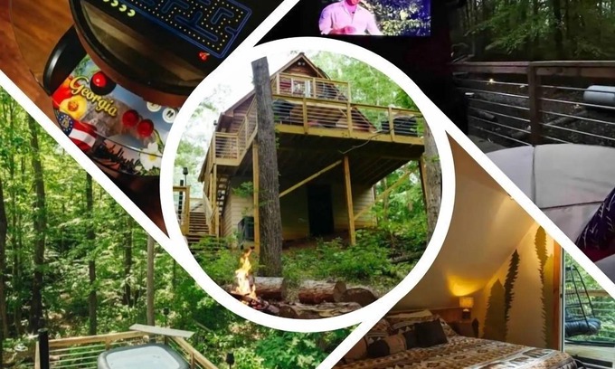 Creekside Cabin at Lake Hartwell: hot tub, 2 king beds, outdoor TV, fire pit is located in Martin. Creekside Cabin at Lake Hartwell: hot tub, 2 king beds, outdoor TV, fire pit provides accommodation, featuring Parking, Balcony/Terrace, Entertainment, among other amenities. This Cabin features Parking, Balcony/Terrace, Entertainment, to make your stay a comfortable one.