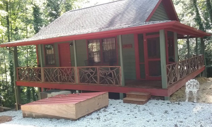This beautiful 2 bedroom one bath cabin is close to town but hidden away in the woods. Come stay and relax in nature and enjoy all the northeast Georgia Mountains have to offer. Close to hiking trails and beautiful waterfalls. This home sleeps four comfortably. Home offers a relaxing atmosphere with a full equipped kitchen to cook all your favorite foods. Come stay with us!