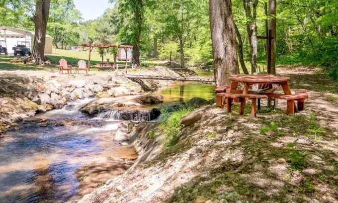 - Scenic Outdoor Spaces: Enjoy 1,000 feet of stunning creek access right in your backyard, complete with picnic tables, swings, and a fire pit, making it an excellent spot for pre-wedding celebrations or relaxed post-wedding gatherings.