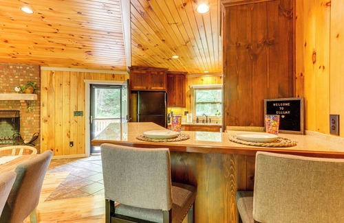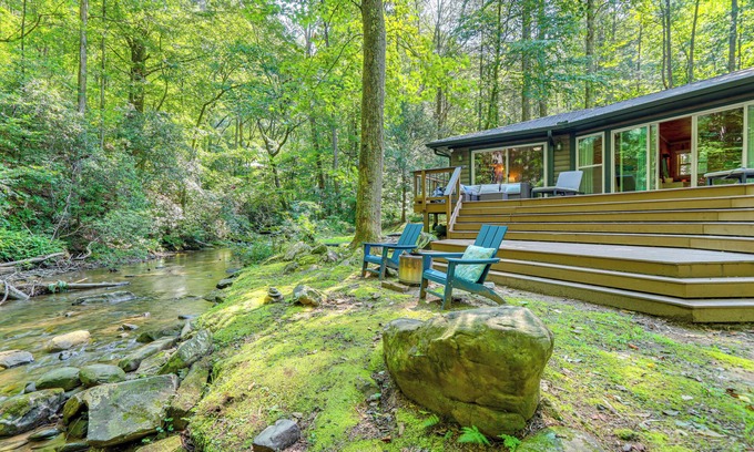 Serenity and seclusion await at this scenic vacation rental in Ellijay, GA. Ideal for families and friends, this pet-friendly retreat features Smart TVs, a wood-burning fireplace, and a furnished deck overlooking Turniptown Creek. After days spent sampling local wineries or hiking in the surrounding wilderness, return to this 2-bedroom, 2-bath cabin to fire up the grill for dinner, unwind by the fire pit, and enjoy the relaxing sounds of the water. North Georgia awaits!