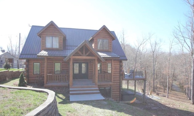 The perfect retreat from the hustle and bustle of your daily routine! Enjoy our spacious 1.5 story custom log cabin with a finished walk-out basement on Rough River Lake. With enough room to sleep nine, the cabin features 4 bedrooms and 3.5 bathrooms. With an open concept floorplan, the fully stocked kitchen includes beautiful California Redwood countertops, stainless appliances and plenty of dishes and cookware for your cooking needs. Private hot tub and close to the lake!