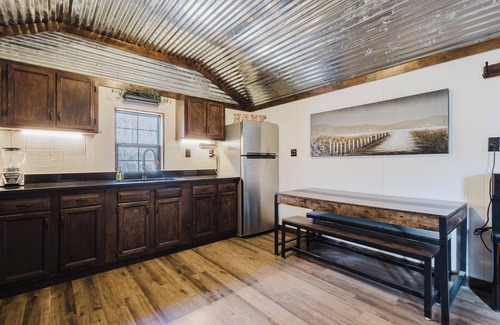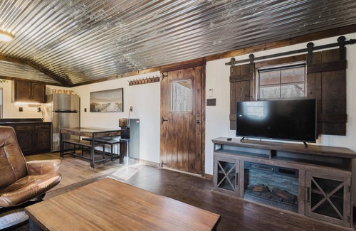 Nestled on 14 peaceful acres near Red River Gorge, this cozy creekside bunkhouse is a throwback to summer camp. Enjoy a private deck, hot tub, grill, and the sounds of the nearby creek. The cabin sleeps 4, as it has 1 bunk bed and 1 queen bed and features a full Bath House with private shower rooms and restrooms just steps away.