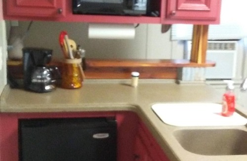 Creekside Cottage Information: Located just outside of the Shoal Bay Recreation Area gate in New Blaine, AR sits this tiny cottage. If you like to fish and enjoy all of the amenities that Shoal Bay has to offer but do not have an RV, this is the place for you. (Please note that the Recreation Area is only fully open March through September. If you come in the off season you can still enter to fish and hike, but the restrooms and swimming area will be closed). The tiny cottage is perfect for couples but can sleep four if the futon is used. This is not a 5 Star Hotel. It’s a cozy, comfortable, and conveniently located cottage that won’t break your budget. Creekside Cottage is a total of 400 square feet but offers a sitting area and kitchenette with coffee pot, microwave, small crock pot and mini fridge. (A larger fridge is located under the picnic pavilion.) There is a TV with DVD player and a selection of movies. Sorry, but no other TV service or WiFi is available at this time. A separate bedroom features a queen size bed with a comfortable 12" memory foam mattress. The rustic decor bathroom includes a large shower. Linens and dishes are provided. Temperature is controlled by a window unit and ceiling fan. A heater is also available for those of you that are cold natured.