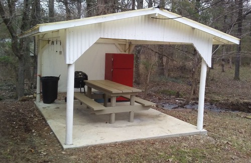 Not only are you within walking distance of the Recreation Area. Which offers swimming, hiking, fishing, and a playground, the Creekside Cottage property has several great things to offer. A separate two car carport (approximately 200 feet from cottage) is available to park your vehicle or boat as well as a picnic pavilion sitting alongside the small wet weather creek that crosses the property (may not be flowing during severe dry spells). The charcoal grill, and fire pit add to your outdoor experience.