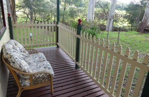 Enter Rumbellara Farm, continue over the bridge, up the hill until you see the cottage on the right. This is all accessible with a two-wheel drive car any time of year. The cottage sits on an acre of creekfront gardens and bush for you to enjoy. Please keep out of fenced areas.