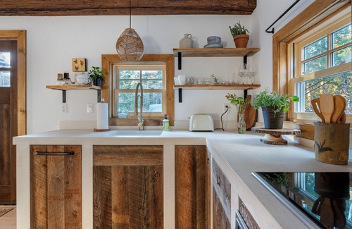Tucked by an enchanting creek, this newly built cabin is a serene haven where nature and comfort meet. Unwind together in the hot tub beneath the stars, relax in the wood fired sauna, or enjoy a fun evening in the game room. Let the soothing sounds of the creek lull you to sleep as you take in the beauty of the outdoors from every window. Explore nearby trails, quaint towns, and secret escapes. Pet-friendly, perfect for couples seeking a retreat of their own in every season.