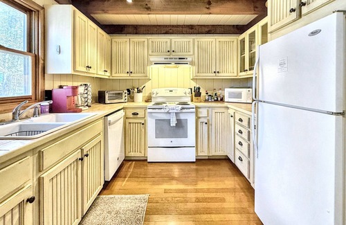 Step outside to your private wooded backyard, complete with a fire pit and Adirondack chairs, where you can gather under the stars after a day of exploring. A short, easy hike leads you to picturesque small waterfalls and a wading pool—perfect for a refreshing dip on a hot day