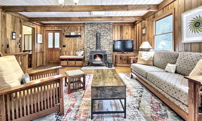 Escape to our charming Karma cabin Mountain retreat in the woods, great for dogs and humans, where you can experience an authentic mountain getaway that's all about simplicity and nature. Nestled in a quiet neighborhood, this cozy retreat is fully furnished with everything you need and nothing you don't, making it the perfect spot for relaxation and adventure.