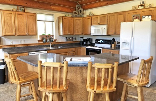 Kitchen stocked with plates, silverware, cups, baking dishes, etc. (enough for the amount the home sleeps)