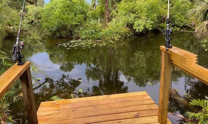 Take it easy at this unique and tranquil getaway. Surrounded by nature on the edge of Fort Myers. After a long drive down a gravel driveway, the house sits in a special enclave. There is wildlife in abundance and fishing in the creek. We now have wi-fi to access the internet and stream TV.