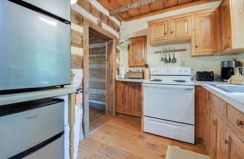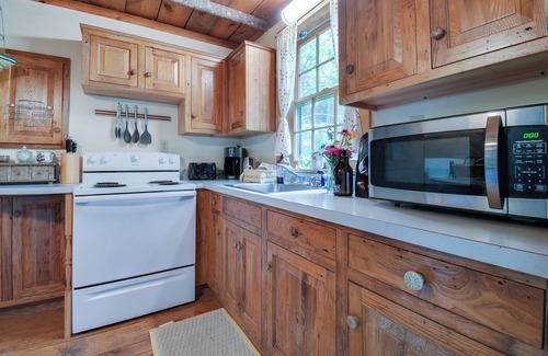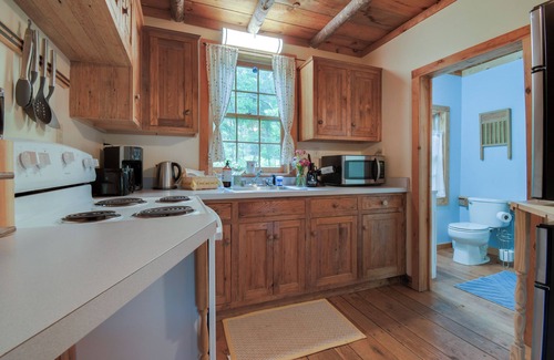 The School Teacher’s Cabin enjoys a peaceful, private creekside location at historic Wade’s Mill in the