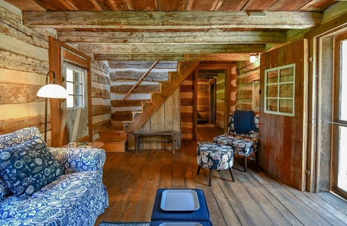 - Creekside historic log cabin w/modern amenities at historic Wade's Mill