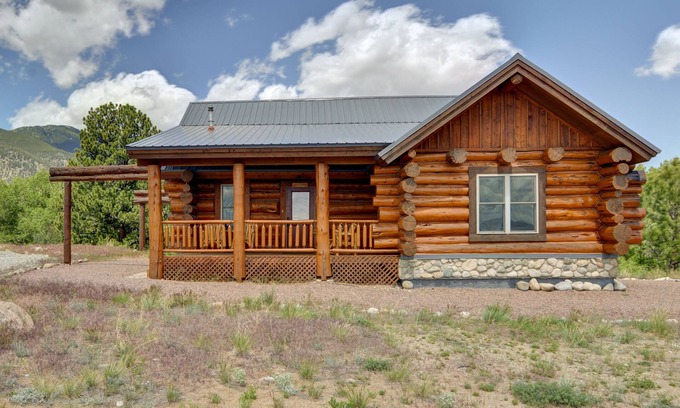 Our log cabin is approximately 4 minutes from downtown Buena Vista and has easy access to Cottonwood Pass, both Mt. Princeton and Cottonwood Hot Springs, local Drive-In movie theater, hiking trails, rafting, horseback riding, fishing and many other outdoor adventures to be found in Buena Vista. The property includes direct access to the beautiful and relaxing Cottonwood Creek that can be heard from inside the cabin, something special to be found in Buena Vista. It is not unusual to see wildlife, primarily deer, down by the creek. Expansive views of the beautiful Sawatch mountain range, framed by 14,000 foot Mt. Princeton are highlighted from the front porch. Additonally, the property has a large driveway with ample space for parking (and a lot of space for easy turn around for larger vehicles or trailers).