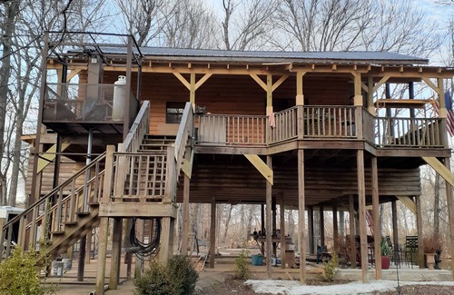We Welcome you our Big Privately located CreekView Cabin Retreat it is tucked away from it all, nestled among the woods overlooking the beautiful creek ,best floating lazy river on a large gated private property with a few cabins around but not too close to have your privacy. This cabin is perfect for a family or just a few friends to getaway from it all. It sleeps 6 comfortably ( 3 beds 2-king 1 queen) and maybe a couple little ones on the sectional couch , air mattress or bring your tents and set them up under the cabin or in the yard or field plenty of room very safe (no bears here ) just deer and rabbits and the neighbors very friendly dog . Relax by the firepit while looking and listening to the creek and after the kids are in bed go relax in the jacuzzi while listening to your favorite music from the speakers in the jacuzzi . In the morning you can Enjoy your coffee sitting on the large porch watching the Eagles fly by. Overlooking the creek . This cabin has the ultimate cabin feel like a cabin in the smokey mountains but your in southern middle Tennessee where there is No traffic ,no tourists traps ,no shops , just peace and quiet and beautiful nature at its best This is a luxury cabin that is fully equipped, nice kitchen with almost all the things you need even, spices, sugar, flour,oil, ketchup, mustard, etc. and some extras in pantry cupboard, high top dining table for 4 , a bedroom with a king size bed, a full bathroom with a tile shower, nice comfy living room with great views from every window. Living room has a big screen tv with surround sound system, dvd player even a few dvd's to watch and High speed fiber internet with Netflix ,Prime Video, ,Disney and a few more or you can stream your favorite programs. Upstairs is a large loft with a king and a queen bed along with a full bathroom with a shower/tub combo. There is also plenty of room for parking, even if you want to bring your 4-wheelers or side by side's with lots of trails and backroads to explore. We are located just a few minutes from Natura Riding park in Westpoint and a mile from the Taco Shack and sycamore campground and kayak rentals. This cabin is a fisherman's and kayakers dream retreat it sits along almost 500-2000 liner ft of creek access with a large river rock gravel bar creek bed for easy access for wading, fishing, kayaking and even a swimming hole. We have a couple kayaks available to use to float the creek too . We are also Pet Friendly we Do NOT charge any fees or restrictions for sizes or how many, We love our fur babies and they really enjoy coming to enjoy the creek with lots of room to run.