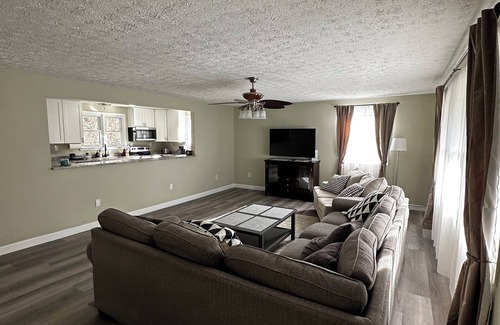 Welcome to our newly renovated 3-bedroom, 2-bathroom house, accommodating up to TEN guests. Tailored for trail riders and off-road enthusiasts. The spacious garage fits two cars. Enjoy the soothing creek and waterfall just 300 Feet away.