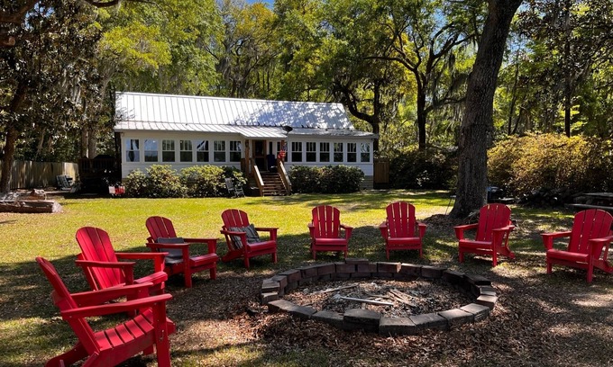 Check your phones at the door and soak up every minute of what makes life in the Lowcountry so special. At night see dazzling stars and moonrises overhead while relaxing under live oaks on the marsh front lawn. Gather around the extra large fire pit and roast yourself some oysters or fry local shrimp and savor the authentic taste of our childhood. We promise....you will not want to leave.