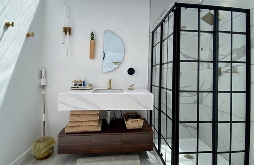 Guests will enter their accommodation through the main lobby (a shared space) and make there way to their private designated dome. The lobby has a a full kitchen featuring a sink, refrigerator, freezer with icemaker, oven with range, and a convenient dishwasher to make cleanup a breeze. Guests who book the entire space will be given access to the laundry room. Each dome has a private separate code for additional safety. The lobby is a shared space and other guests may be utilizing it as well. Guests have a private kitchenette in each dome however, the kitchen sink and dishwasher are located in the lobby space.