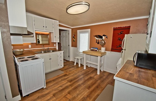 Kitchen Amenities Include: Oven/Stove ~ Refrigerator ~ Cookware ~ Bakeware ~ Utensils ~ Coffee Maker ~ Tea Kettle ~ Microwave ~ Toaster ~ Blender