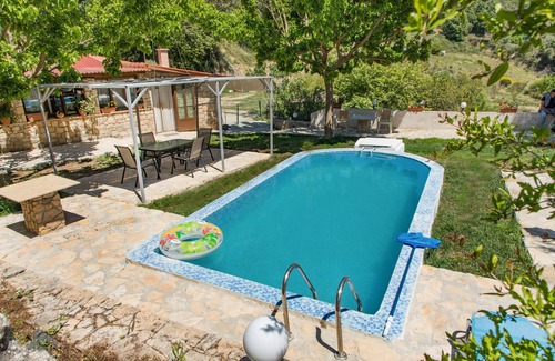 It's for people that don't want the town noise to relax in swimming pool, to eat fruits from the 20 different fruits tree and to enjoy the beautiful natural area in 20 acres field.. Irakleio airport is 80 km ,Chania airport is 55 km , and banks,supermarkets,coffee bar,restaurants is at 3 km away from the house!!!