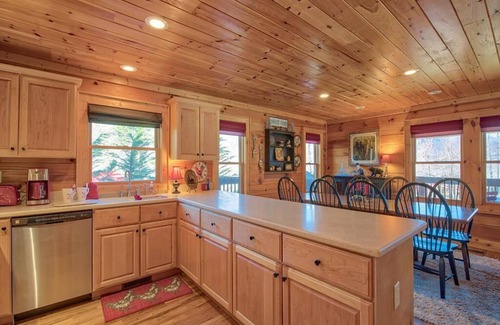 Carolina Mountain Vacation Homes invites you to spend your getaway in style at Longhorn Lodge located in the desirable community of Crockett's Meadow! Step into the open concept living space for entertaining and relaxation with a gorgeous gas fireplace, and dining area featuring a table for eight. This tastefully decorated cabin boasts two very spacious bedrooms with king-sized beds and televisions, with cable provided. The loft can be used as a sleeping area for two additional guests. The fully equipped kitchen is perfect for making yourself at home and the washer/dryer are convenient for taking care of skiing and hiking gear!