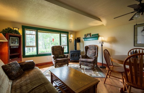 Located 80 feet from Lake Superior’s beach, Cottage #2 provides the gentle sound of breaking waves hitting the shore. There is a spectacular overall open view of Superior amidst small aspens. Only walking paths, natural vegetation, and rocks separate you from the water. A stairway provides easy access to the 540ft of rocky beach. In front of Cottage #2 is a fire circle with comfortable seating and a charcoal grill. The front bedroom features a queen bed, a romantic gas stove, and a lakeside patio door. The living room has a decorative gas stove and a picture window looking out upon the lake. It is furnished with a plush futon, 2 wingback chairs, a smart TV with access to the internet (no broadcast TV), a DVD player, and a dinette set. The rear of the cottage has a fully equipped kitchen, a bathroom with a shower, and a bedroom with a full-size bed. This four-season cottage is open all year, decorated with a moose, bear, and wolf theme, and has wireless internet access. An artesian well provides excellent water for drinking. Cottage #2 sleeps up to 6 people (2 on the futon) with all linens provided.