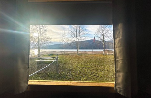 Price Bunkhouse is a intimate lakeside cabin with splendid lake and mountain views. The cabin has 2 bedrooms (1 queen, 1 twin, and 3 bunks) and 1 small full bath with a shower. The wood paneling and fireplace help to create a cozy atmosphere. This cabin is excellent for small families and the fenced patio area is perfect for pets.
