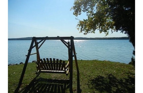 There is a boat slip in private marina included with cottage rental. Just let us know if you're considering bringing a boat! Jet skis can be anchored in shallow water off the beach. Cottage is approx. 100 feet from the beach and lake.