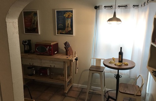 This cute and cozy 1 bedroom/ 1 bath house is located steps away from historic downtown Wickenburg. Walk to restaurants, bars, antique stores, city hall, grocery store, and more. The property has been recently renovated from head to toe with a tasteful train theme.