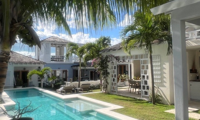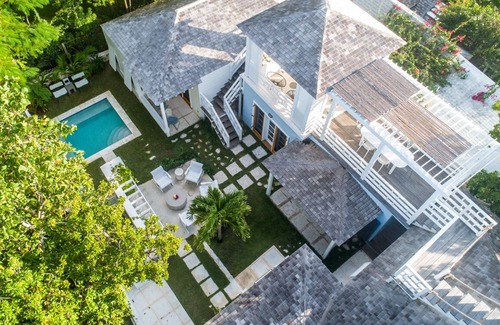Crown Affair provides a quiet and secluded experience with the convenience of being in the heart of the historic village. Within an easy stroll of the property are boutique shops, multiple restaurant choices, and of course the world-famous beach. When not eating out, you can opt to hire a local chef or prepare meals in the well-appointed kitchen and on the outdoor charcoal grill. The house offers choices to sit at a large family dining table inside or to enjoy a candle-lit evening outdoors in the covered dining pavillion. At the house there are many places to relax: head to the upper level sundeck, outdoor dining and covered lounge for ocean breezes, relax in your own spacious garden around the pool, while away time on the shaded porches and outdoor living area.