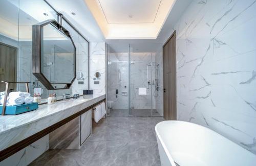 Located in Hangzhou, within 14 miles of Hangzhou East Train Station and 19 miles of Wushan Square, Crowne Plaza Hangzhou Linping by IHG provides accommodations with a restaurant as well as free private parking for guests who drive. The property is around 21 miles from Xixi Wetland, 21 miles from Lingyin Temple and 18 miles from Hangzhou Train Station. The property has room service, a 24-hour front desk and luggage storage for guests. The hotel will provide guests with air-conditioned rooms with a closet, a safety deposit box, a TV and a private bathroom with a shower. Guests at Crowne Plaza Hangzhou Linping by IHG can enjoy a buffet breakfast. Remnant Snow on the Bridge in Winter is 18 miles from the accommodation, while Bai Causeway is 18 miles away. Hangzhou Xiaoshan International Airport is 23 miles from the property.