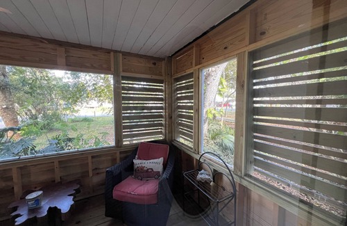 Enjoy a peaceful stay at this cheerful 2-bedroom cottage in Cocoa. Built in 1960 and nestled on a 1/4 acre wooded property, the home has been completely renovated and updated specifically for the comfort of our guests. The cozy space features 2 bedrooms, a bathroom with a rain shower, and essential amenities like AC and Starlink WiFi. Relax in the park-like private property, comfortable porches and make yourself at home. We'll be available to answer any questions while you stay at our place.