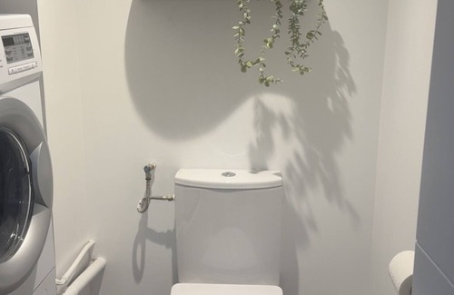 The kitchen is equipped with an oven, a stovetop, and a refrigerator, as well as a coffee maker, an electric kettle, and a microwave. Bathroom amenities include a hair dryer, towels, and toilet paper. And you won't have to pack extra clothes, because you'll also have access to laundry facilities. Other amenities include bed sheets, heating, and a dining table.