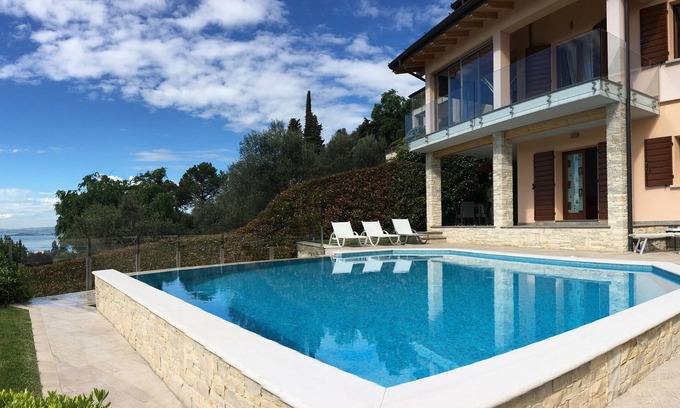- Modern vacation apartment with fantastic lake view, terrace, balcony & infinity pool
