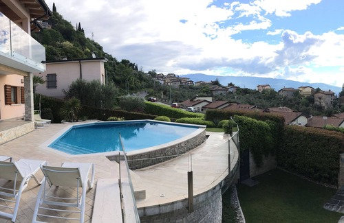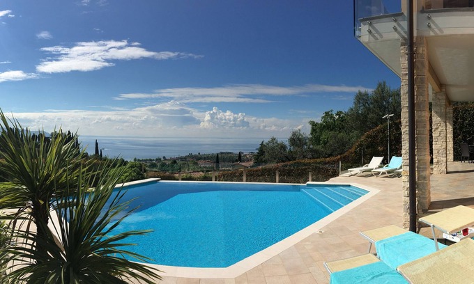 - Modern vacation apartment with fantastic lake view, terrace, balcony & infinity pool