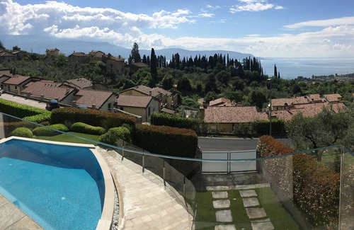 - Modern vacation apartment with fantastic lake view, terrace, balcony & infinity pool