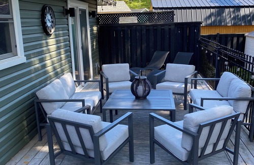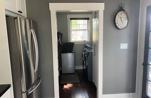 Beautiful bungalow with front porch seating. Large outdoor deck and lower backyard dining area with bbq.Cozy living room with fully stocked kitchen everything you need. Laundry facilities on site.5 minutes from Bay beach. Walking distance from great restaurants and shops.
