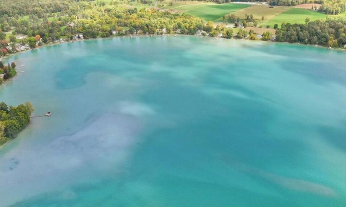 Crystal Blue Oasis boasts a level lot with eighty-two feet (82’) of direct frontage on a 155-acre spring-fed lake with all-sports access to boat, swim, and fish for Bluegill, Black Crappie, Sunfish, Largemouth Bass, and Walleye. Its calm, shallow, and sandy shoreline makes it great for little ones to splash and play. The marl (clay) lakebed allows sunlight to reflect, creating the mesmerizing turquoise water reminiscent of the Caribbean, and its crystal-clear water lends itself to a tranquil kayak and paddleboarding experience. For a small added fee, there are two sit-on kayaks, two sit-in kayaks, two kids’ kayaks, and/or two stand-up paddleboards available onsite for the duration of your stay. Contact the host to arrange access and to sign the waiver of liability. For guests traveling with their watercraft, a no-cost boat launch is available for small boats and personal watercraft. Seasonally, the onsite dock (one side) is available for use during your stay. An assortment of life jackets is available.