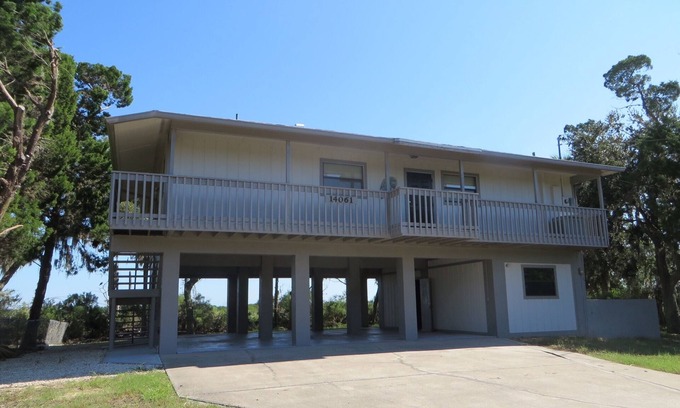 Beautiful stilted home in the community of Ozello. Waterfront views with direct access to the gulf and nature preserve from the secluded Pirate Cove community boat ramp. Fish and scallops abound, boaters welcome! Two bedroom (both king beds), two full baths with giant covered deck boasting views of the water, wildlife and surrounding islands.