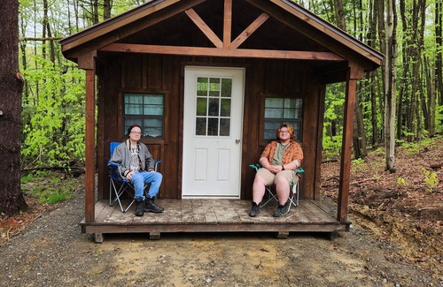 Escape to Cub Cabin, a brand new rustic 1-room retreat nestled in a peaceful woodland camp. Hike or bike adjacent trails, or relax and soak in the tranquility of the forest. Located 12 miles from Ithaca, NY, known for its waterfalls and gorges.The cabin has a full size bed and two cots. It also has a mini-fridge, microwave, french press and a hot water kettle. The cabin is currently being upgraded with electric. Parking area, shower house and bathrooms are a short walk away. A potable water spigot is close to the cabin along with a picnic table and campfire ring. This is an alcohol and drug-free facility, providing a peaceful space to reconnect with nature and loved ones.