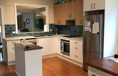 This renovated quirky 3 bedroom, fishermans cottage has all the comforts of home and more. It has a queen size bed with an ensuite, a double bed room, and a 3rd bedroom with a double bunk and a single on top. All the bedrooms have fans for those long summer nights. This house sleeps 6 adults and 1 child. There is a huge main bathroom and laundry with washing machine and dryer. The brand new kitchen has a dish washer and micro wave and a fabulous big fridge freezer for the cold beverages. Nespresso machine and everything you"d need to feed the family. After a big day exploring, relax inside with the reverse cycle air con, watch netflix etc, listen to music or play a game with the family or friends.