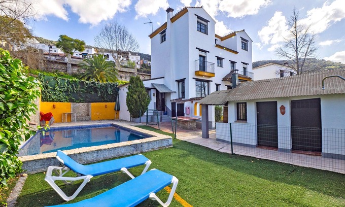 Rural House La Jara in Jimera de Líbar: enjoy an authentic experience in the heart of nature, with a private swimming pool, spacious areas and an ideal location for families and groups.Hello! We are CUBO'S HOLIDAY HOMES, specialised in holiday accommodations since 2005.Rural House La Jara is a charming rural accommodation in Jimera de Líbar, located in the heart of the Guadiaro Valley and the Serranía de Ronda. Perfect for large groups and families, this 230 m² house offers privacy, comfort and an impressive natural environment for rest and adventure. Located just 5 minutes walk from the main square and near the train station, it facilitates access to Ronda, Benaoján and other points of interest.Rural house with swimming poolDistributed over three floors, the house has 6 bedrooms with capacity for 18 people, ideal for large groups looking for a comfortable refuge. The rooms combine single and double beds to adapt to your needs. Additionally, it has 5 bathrooms, including one adapted for people with reduced mobility.The interior invites coexistence with welcoming spaces, a fireplace for cool afternoons and an American kitchen equipped with everything necessary: gas hobs, fridge, microwave, oven, dishwasher and more, so you can prepare your meals with total comfort.Outside, you will find a private swimming pool and a barbecue area that will make your moments with family or friends an unforgettable memory. The fenced plot, the garden and the 100 m² terrace complete a space designed for enjoyment and tranquillity.For nature and adventure lovers, the location is unbeatable: in the heart of Sierra de Grazalema, with access to hiking routes such as PR-A 255, the Ermita pond for natural baths and numerous outdoor activities, including bird watching.Immerse yourself in the local culture by participating in the traditional festivals of Jimera de Líbar, such as Carnival, Cultural Week, the Patron Saint's Fair, the Water Festival, and the Beer Festival, which will allow you to discover the authentic essence of the village.Access is simple and comfortable, with bus station 200 m away and nearby train station, as well as services and shops at a short distance, facilitating the logistics of your stay.It does not have air conditioning, but it has heating through electric radiators and a fireplace to maintain a pleasant environment throughout the year. Pets are accepted with an extra supplement, ideal for not leaving any family member behind.Book now and get ready to enjoy an unforgettable stay at Casa rural La Jara! As we also do in all other properties of our CUBO'S HOLIDAY HOMES brand, all our accommodations have towel and bed linen sets. We have cots and high chairs upon request for babies from 0 to 2 years old. And all of this, absolutely FREE.Likewise, guests of CUBO'S HOLIDAY HOMES can enjoy EARLY CHECK-IN and LATE CHECK-OUT upon request, provided that the booking calendar and scheduled cleanings allow it.Other notable aspects CUBO'S HOLIDAY HOMES welcomes you!. We are a short stay management agency that offers carefully selected properties. The company was founded in 2005 with the mission of offering a quality alternative. The ratings of our guests in all our accommodations endorse us. You can check it on our profile.Moreover, CUBO'S HOLIDAY HOMES offers a blog with recommendations about the area, places to visit, restaurants and special dates.Do not hesitate to send us your comments (recommendations, requests, etc.). We will do our best to guarantee your safety and peace of mind. Booking Conditions Mandatory deposit before entry (refundable 48 hours after review). Parties and noise are not allowed during rest hours. IMPORTANT: Arrivals from 9:00 PM onwards involve an additional cost that must be paid upon entry.CUBO'S HOLIDAY HOMES is an online marketing platform for tourist accommodations. Through this platform, owners of establishments duly registered in the corresponding tourism registry of their autonomous community promote and manage the booking of their accommodations. CUBO'S HOLIDAY HOMES does not act in any case as owner, manager, operator, or direct responsible for any of the accommodations offered on the platform. Its function is exclusively limited to facilitating contact between interested parties and the legal representatives of the accommodations.